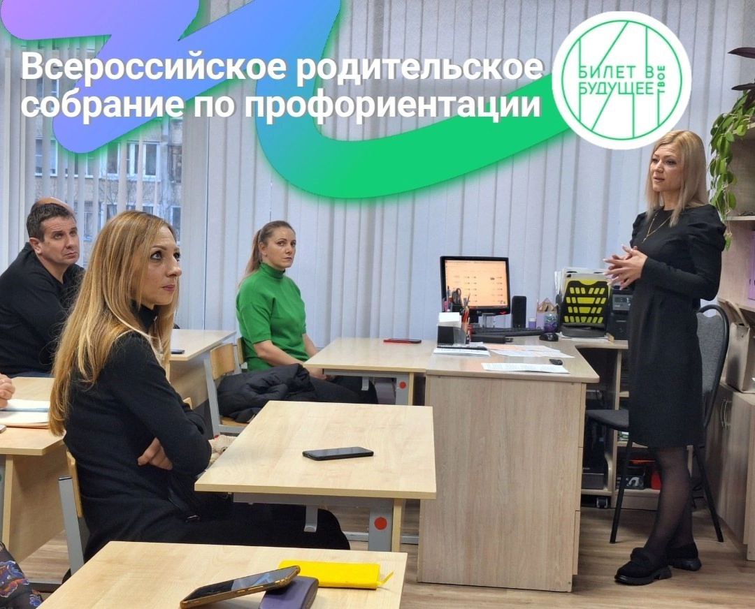 Третье Всероссийское родительское собрание проводится в рамках Единой модели профориентации, внедренной с 1 сентября 2023 г. в российских школах, реализующих образовательные программы основного общего и среднего общего образования. Федеральным оператором проекта по ранней профориентации «Билет в будущее» является Фонд Гуманитарных Проектов. Ознакомиться с содержанием собрания можно на сайте: https://bvb-kb.ru/?section=vzaimodejstvie-s-roditelyami