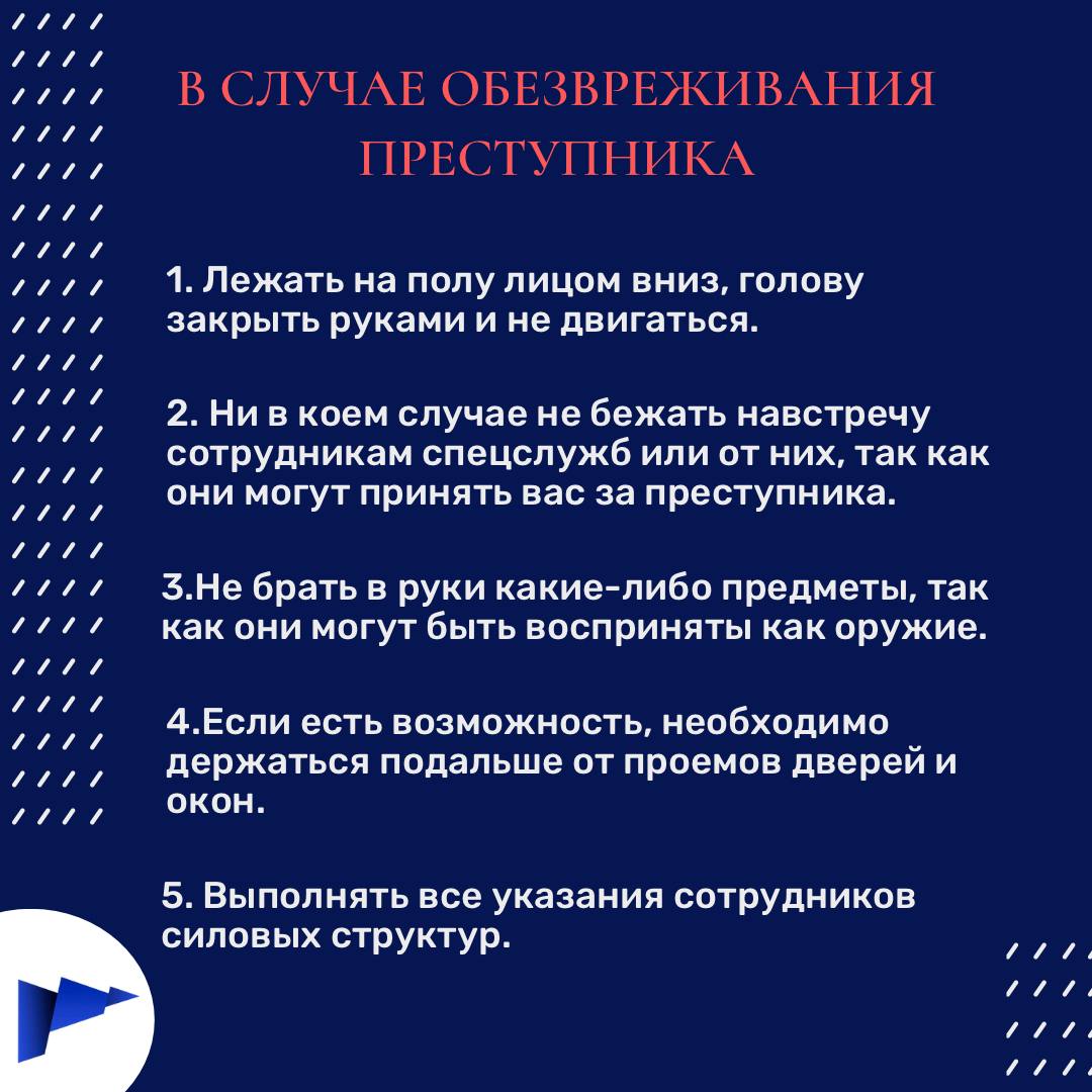 Мы подготовили для вас информативные карточки порядка действий при ЧС в условиях образовательной среды на основании Методических рекомендаций Национального Антитеррористического Комитета