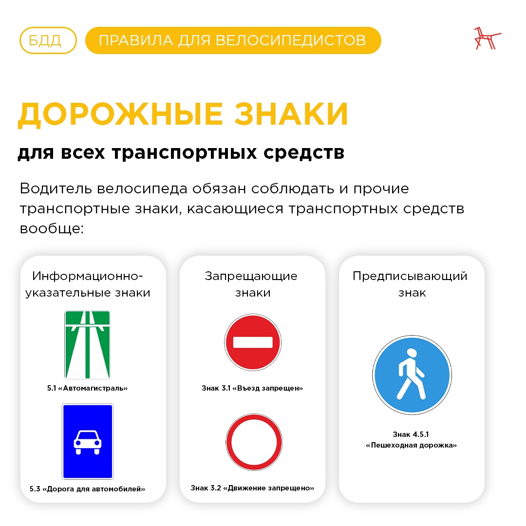 Центр по профилактике ДДТТ Института воспитания собрал для вас правила дорожного движения для велосипедистов и регулирующие движение дорожные знаки.