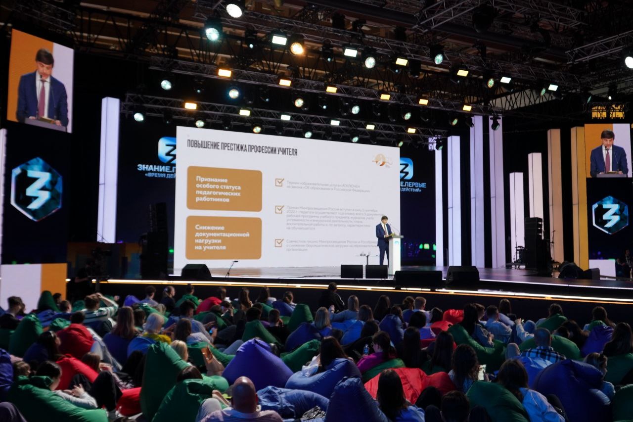 Министр просвещения Российской Федерации Сергей Кравцов выступил на федеральном Просветительском марафоне «Знание.Первые» Российского общества «Знание», который проходит в Москве и других городах с 24 по 26 апреля. Сергей Кравцов рассказал школьникам о престиже профессии учителя и суверенитете российского образования.