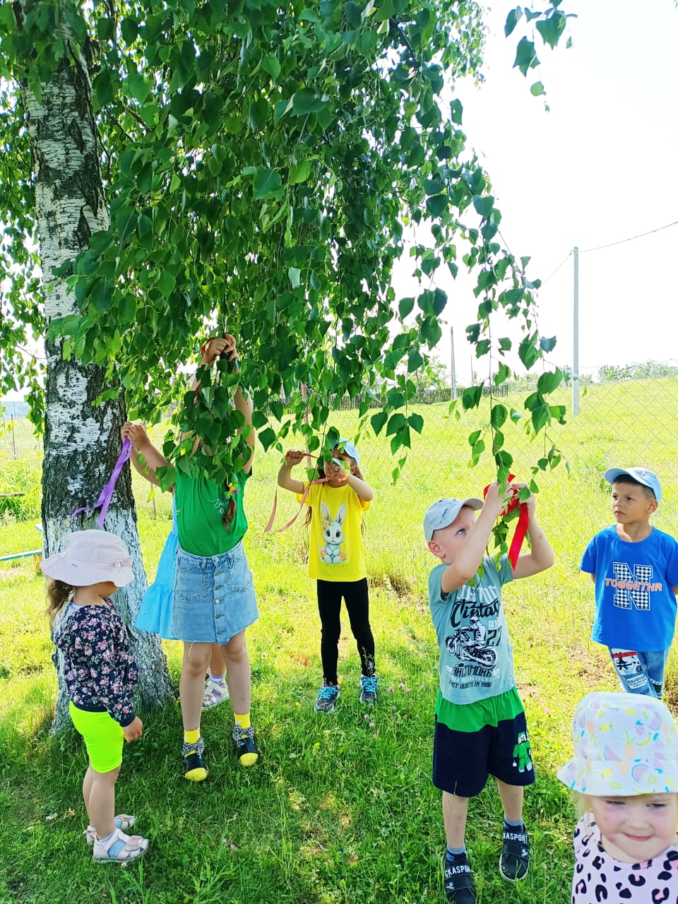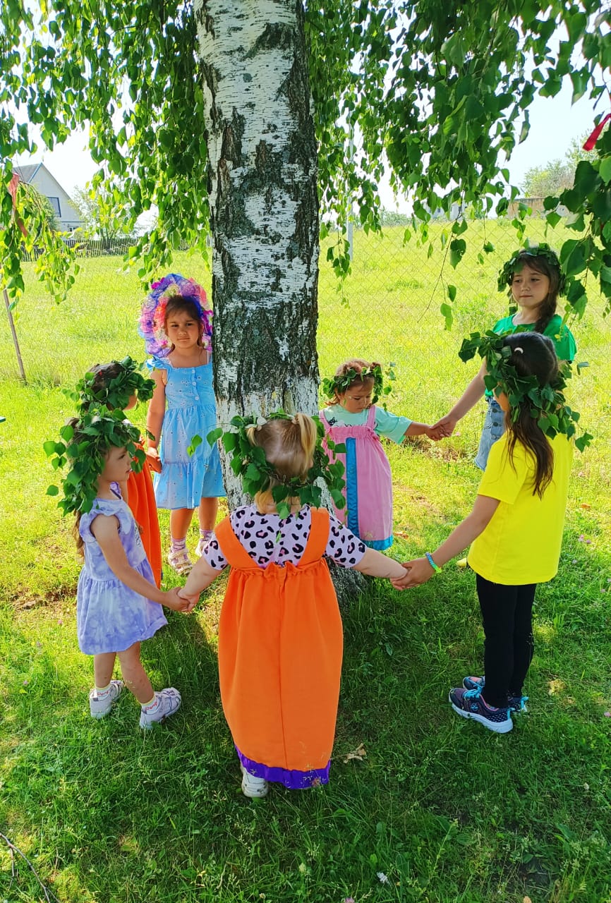 В нашем детском саду прошло мероприятие "Троицу встречаем - берёзку прославляем". С давних пор люди оберегали лес, а больше всего народ любил берёзку - символ добра, любви и чистоты. Дети украсили берёзу атласными лентами, играли в подвижные игры, а девочки водили хоровод вокруг берёзки.